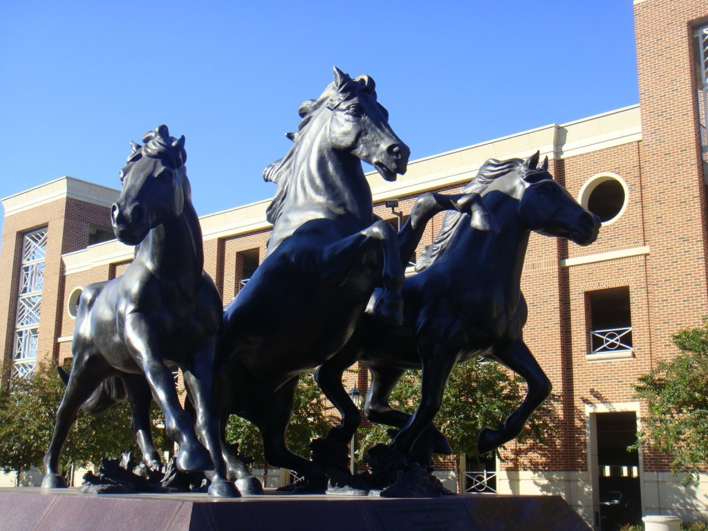 I witness and walk by the three horse statue almost every day. it is a monumental statue. It is freaking huge. It is so broad and beautiful and such a trademark of my freshman year dorm room walk. I see students sit on those horses like they are in the derby. I mean my freshman year coming home I climbed up there. The thing is absolutely ginormous, then I thought about how the horse statues have been part of my career here at SMU even when I think back to when I was a senior in high school touring SMU they always stop the three horses and give a brief speech. I can lie. I honestly don’t even know what they are, there for, but they’re pretty damn cool.
